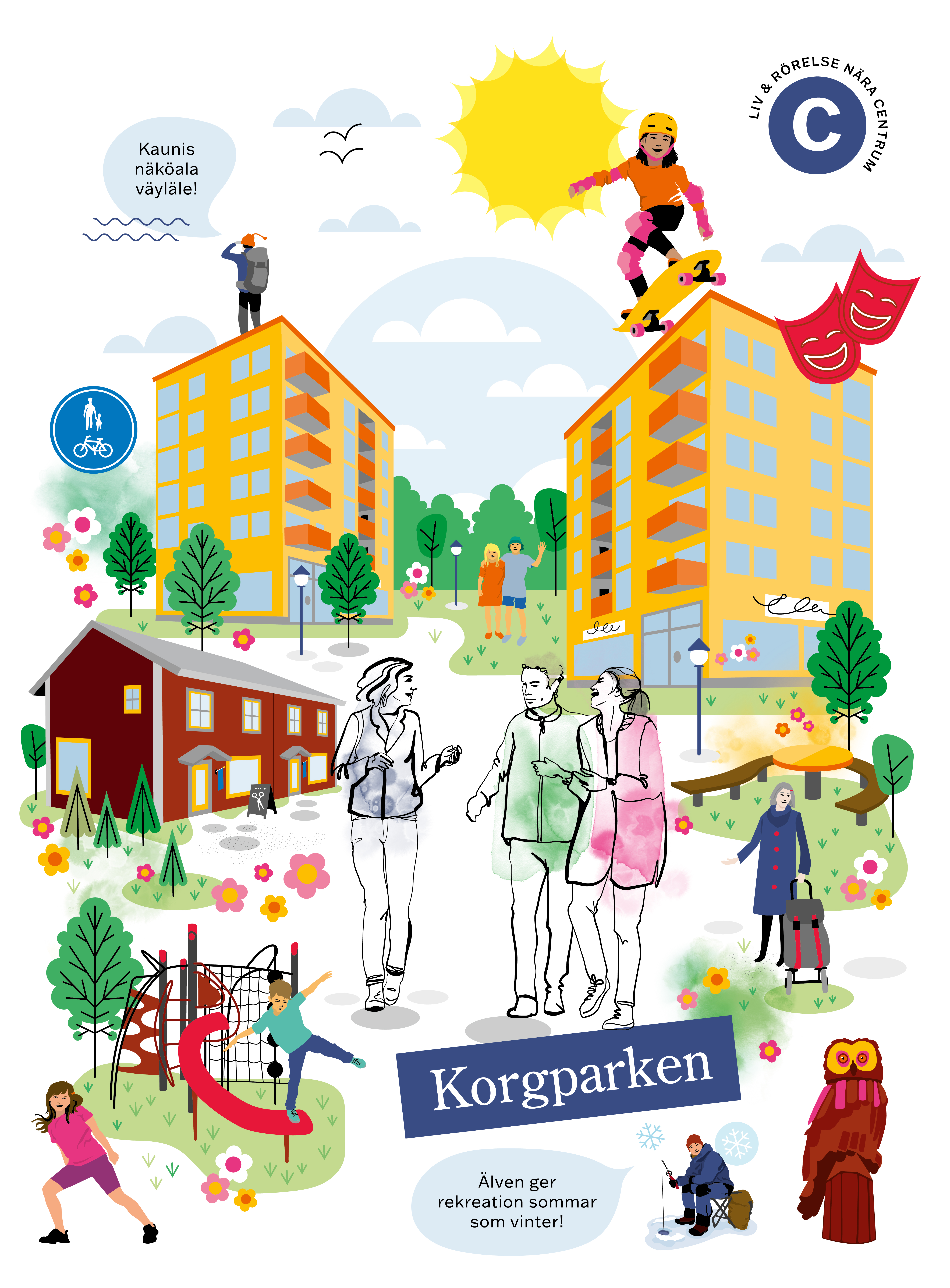 Områdets centrala läge gör att tillgången på offentlig samt kommersiell service är god. Både badhus och sporthall finns i direkt anslutning till Korgparken. Butiker, skola och förskola finns inom gångavstånd.